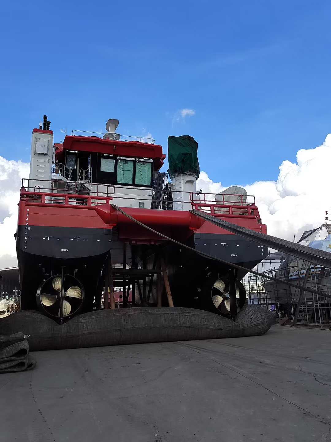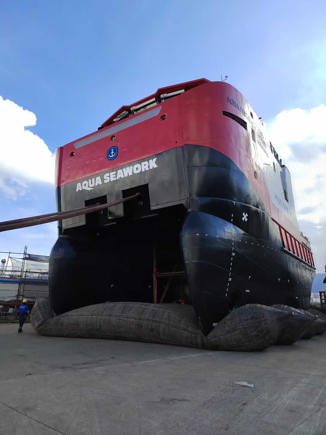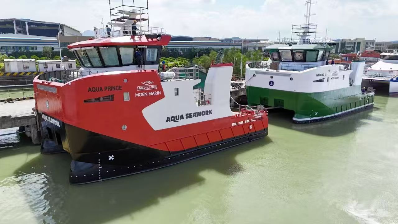 江龙船艇与挪威 Moen Marin AS 签约的两艘 20 米级水产养殖工作船,于2025年8月正式下水。该船水线上,甲板及舾装件,上建等碳钢部分,涂装全部采用“热喷锌”涂层+环氧涂层施工,总面积约1300平方米。